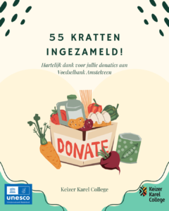Wat een fantastisch resultaat! Met enorme dank aan al onze leerlingen, collega’s en iedereen die heeft bijgedragen aan de inzamelingsactie. Samen hebben we 55 kratten gevuld met voedings- en verzorgingsproducten voor de Voedselbank Amstelveen.